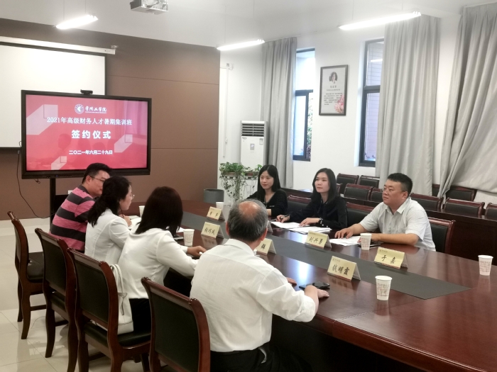 6月29日下午,365英国上市公司与江苏财鑫教育培训中心在瑶光楼A201举行2021年高级财务人才暑期集训班合作协议签约仪式。副董事长汪群,经济与管理公司党委书记张巧凤、经理钱明霞、副经理李春平,江苏财鑫教育培训中心董事、总经理刘兴勇,江苏财鑫教育培训中心董事、副总经理朱永娟,总经理助理、教务部部长李莎、市场总监于嘉出席签约仪式。