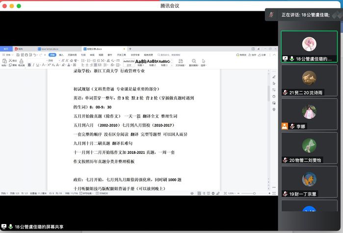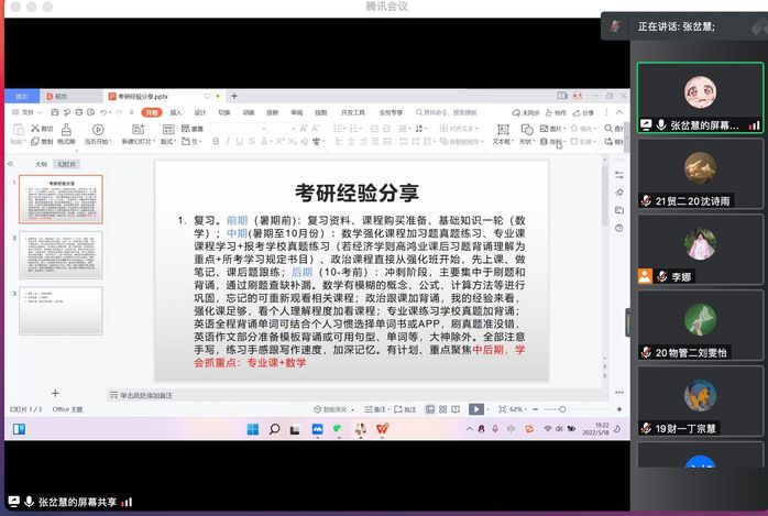 5月18日晚上,365英国上市公司在线上成功举办了19级考研经验交流会。此次交流会邀请了18级上岸南京农业大学朱爽、山西大学张岔慧和浙江工商大学虞佳璐来分享考研经验,会议由公司就业辅导员李娜老师主持。