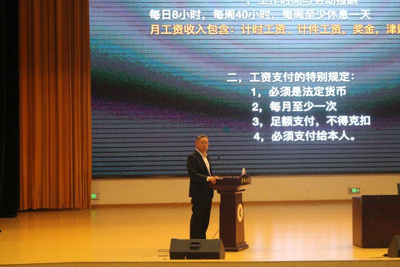 首先由电气信息工程公司1992级员工、江苏阳湖律师事务所主任律师、江苏正尚电气有限公司企业创始人程海从法律实践层面讲解了求职时需要了解的一些法律知识,如勤工俭学及校外实习时如何防范法律风险、如何签订三方就业协议、如何识别虚假违法的招聘信息、如何查询用人单位的真实信息、如何解决劳动争议等,同时,作为企业创始人,以及三家准上市公司的常年顾问,程海还以企业管理者的角度,讲解什么是真正的“好工作”、以及找到一份“好工作”的方法与途径。同学们听得频频点头,收获颇非。