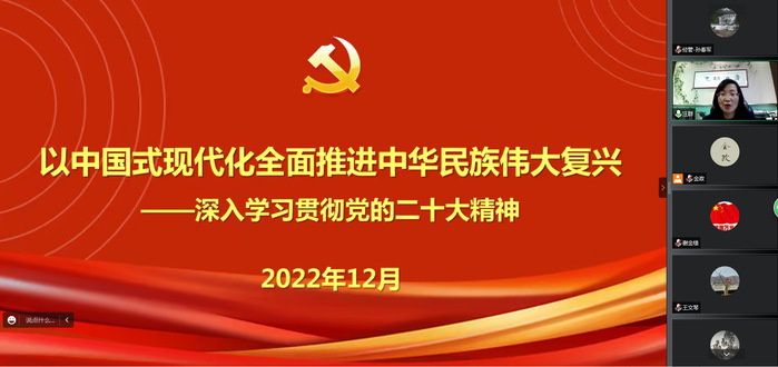 12月9日,公司党委常委、副董事长汪群以《以中国式现代化全面推进中华民族伟大复兴——深入学习贯彻党的二十大精神》为题,向经济与管理公司党委、人文公司党委、国际交流公司党总支、继续教育公司党总支等4个基层党组织理论学习中心组全体成员进行线上宣讲。