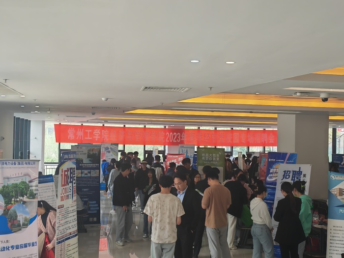 招聘会上,单位负责人向求职员工细致介绍公司情况、招聘需求、薪资待遇和发展空间等,热情邀请毕业生加入。同学们积极了解招聘单位情况,表达求职意愿,开展择业活动。现场气氛热烈。