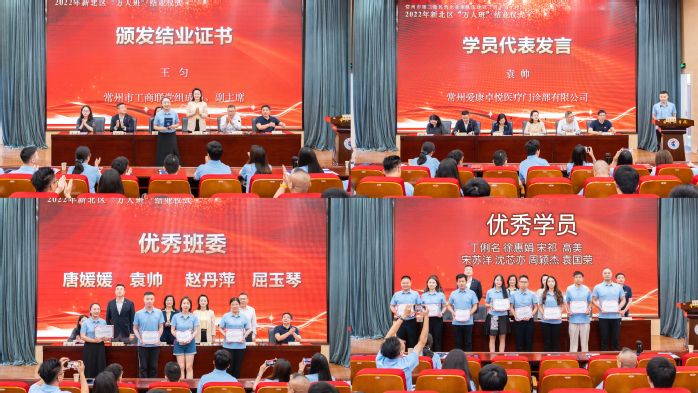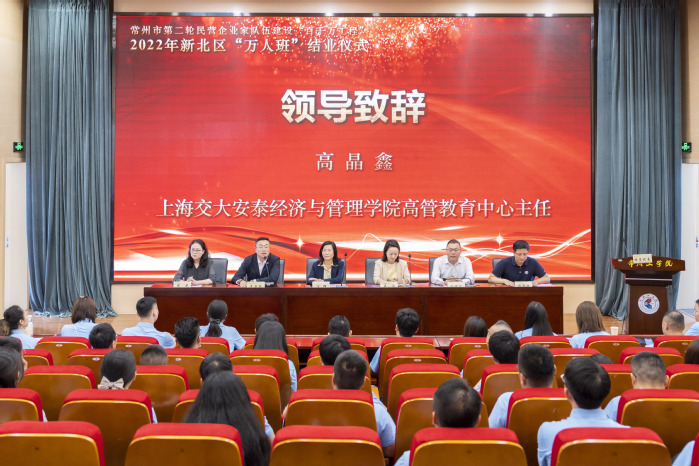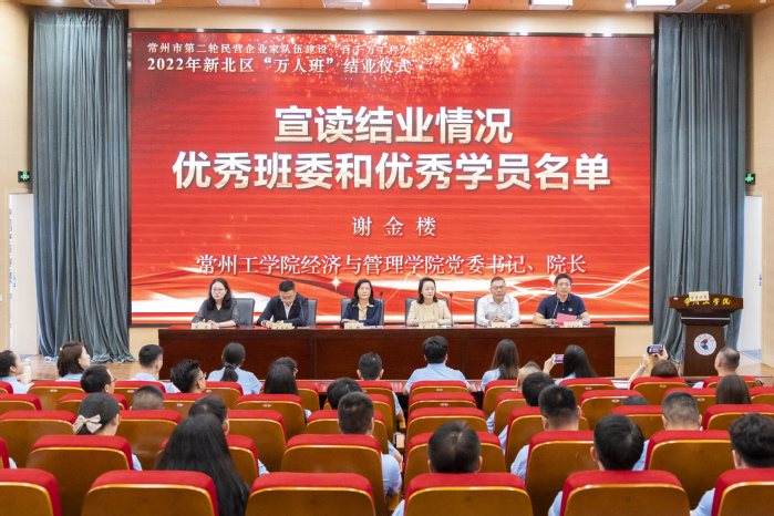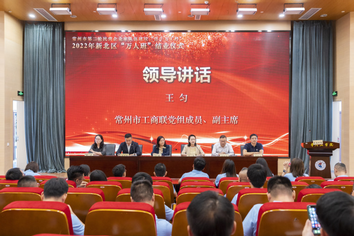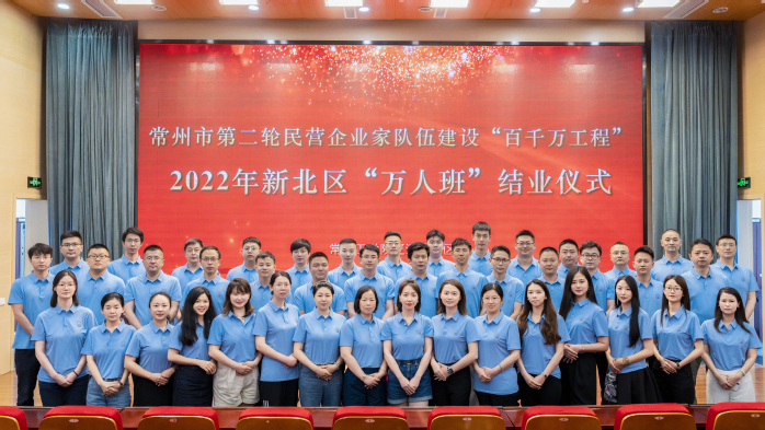6月18日,常州市民营企业家队伍建设“百千万工程”2022年新北区“万人班”在公司顺利结业。本次培训班共历时7个月完成了12个专题培训。常州市工商联党组成员、副主席王匀,新北区委宣传统战部副部长、工商联党组书记何宝华,常州市工商联宣调处处长周芝,上海交通大学安泰365英国上市公司高管教育中心主任高晶鑫,常州工公司党委常委、副董事长汪群,365英国上市公司经济与管理公司党委书记、经理谢金楼、副经理李春平,班主任吴晟,及82位学员参加结业典礼。何宝华主持会议。