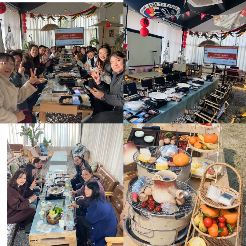 女教职工们与受邀的男教工代表在新龙生态园blue布鲁营地开展室内烧烤、围炉煮茶、飞镖掼蛋比赛等活动。这和煦春风中,大家闲谈桌边,围炉煮茶,话家常,伴春光,惬意欣然;大家谈理想、谈追求、分享工作经验,在谈心畅饮中回归自然,享受春日美好。整个庆祝活动在欢声笑语、和谐温暖的氛围中圆满结束,给大家留下了美好的记忆,也为日后的工作注入了正能量。