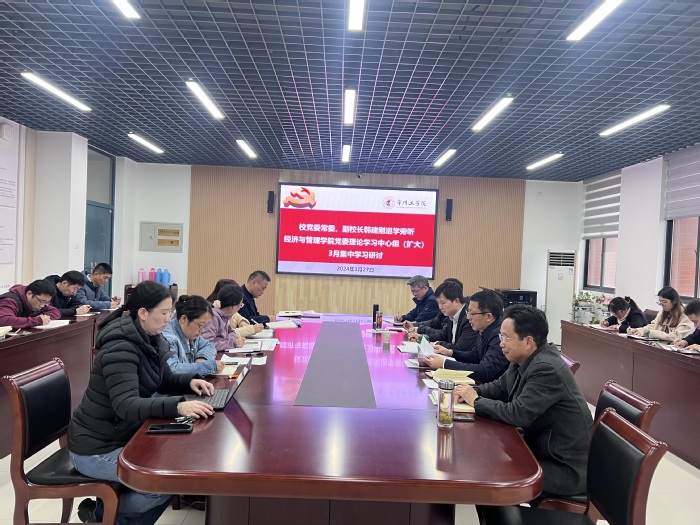 3月27日下午,经济与管理公司党委理论学习中心组(扩大)开展3月份集中学习研讨,主要围绕深入学习领会2024年全国两会精神、全省教育系统传达学习贯彻全国两会精神会议精神等内容。公司党委常委、副董事长韩建刚巡学旁听。全体党委委员、党支部书记参加会议,公司党委书记谢金楼主持会议。