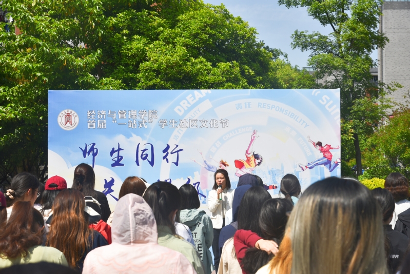 活动伊始,员工工作处副处长眭莉发表了致辞,强调了“一站式”员工社区文化艺术节在增进师生感情、丰富校园生活等方面的重要性,希望大家可以将社区当成第二家,拥抱它、爱护它、守护它,在社区生活中不断提升获得感和幸福感。随后,经济与管理公司党委副书记郭峥春宣布“师生同行 关爱提级”社区文化节开幕。