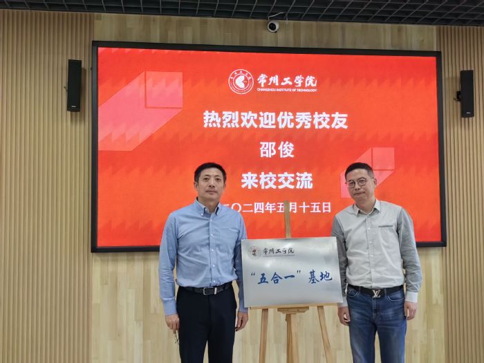 最后谢金楼与邵俊共同为校“五合一”实践基地揭牌,谢金楼表示公司始终重视员工资源的利用与拓展,通过员工回校活动,促进在校生与优秀员工的交流互动,提升员工的职业素养和就业能力,有效促进了理论与实践的结合。