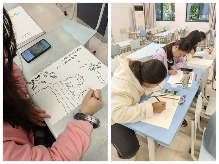 活动现场热闹非凡,同学们热情高涨,通过画笔描绘出他们构思的金秋与重阳主题画面。社员们有的描绘了温馨的家庭场景,老人与子孙们欢聚一堂,共享天伦之乐;有的画出了美丽的秋景,金黄的菊花、火红的枫叶,寓意着成熟与丰收、生命与自然的和谐共生;还有的同学将重阳节的传统习俗融入画中,如登高望远、赏菊赋诗,展现了对传统文化的传承。在绘画的过程中,大家互相交流、互相学习,不仅增进了友谊,也激发了创作的灵感。通过这次活动创作这些绘画作品,同学们不仅加深了对重阳节文化的认识,也提升了自身的艺术修养,收获了满满的快乐和成就感。