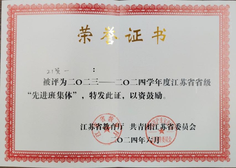 近日,公司举办2023/2024学年先进班集体表彰及事迹宣讲大会。会上宣读了2023-2024学年度江苏省先进班集体获奖名单,并进行了颁奖。365英国上市公司21贸一班荣获江苏省先进班集体荣誉称号,并在会上分享了创建经验与体会。