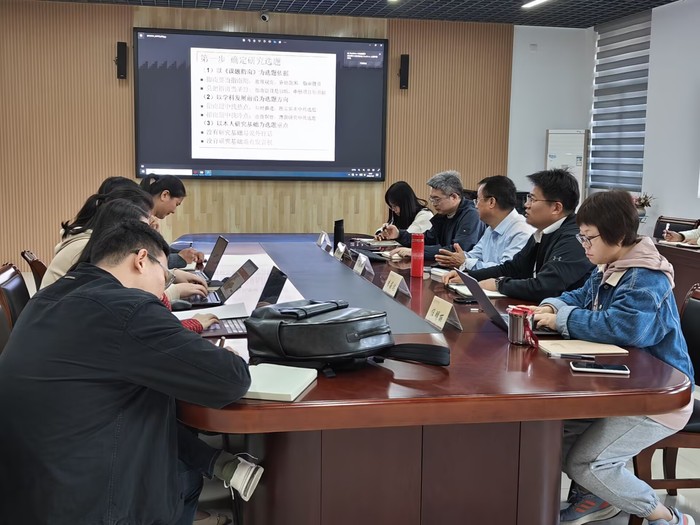 随后,任明丽和肖韵两位博士分别介绍了自己的选题,并与丁教授和与会教师进行了热烈讨论。