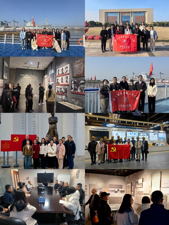 多支部聚焦红色基因传承,组织党员赴革命圣地与国防教育基地开展研学活动,从峥嵘历史与强军伟力中汲取育人力量。11月15日,经济系教工党支部与电子商务系教工党支部分别以“在诞生地寻初心 于战舰上砺担当”“追寻红色印记,感悟强军伟力,砥砺初心使命”为主题,同步赴泰州开展活动。在海军诞生地纪念馆,党员教师们循着历史脉络,重温人民海军从无到有、由弱到强的奋斗历程,一幅幅珍贵图片、一件件实物展品,生动诠释了革命先辈艰苦奋斗的创业精神;在海军舰艇文化园,大家登上“三舰一艇”等退役功勋舰艇,近距离观摩现代化装备,深切体会新时代海军“忠诚使命、建功海洋”的家国情怀。电子商务系教工党支部还特别前往溱湖国家湿地公园,将红色教育与生态文明建设学习相结合,引导党员感悟发展成就、强化责任担当。